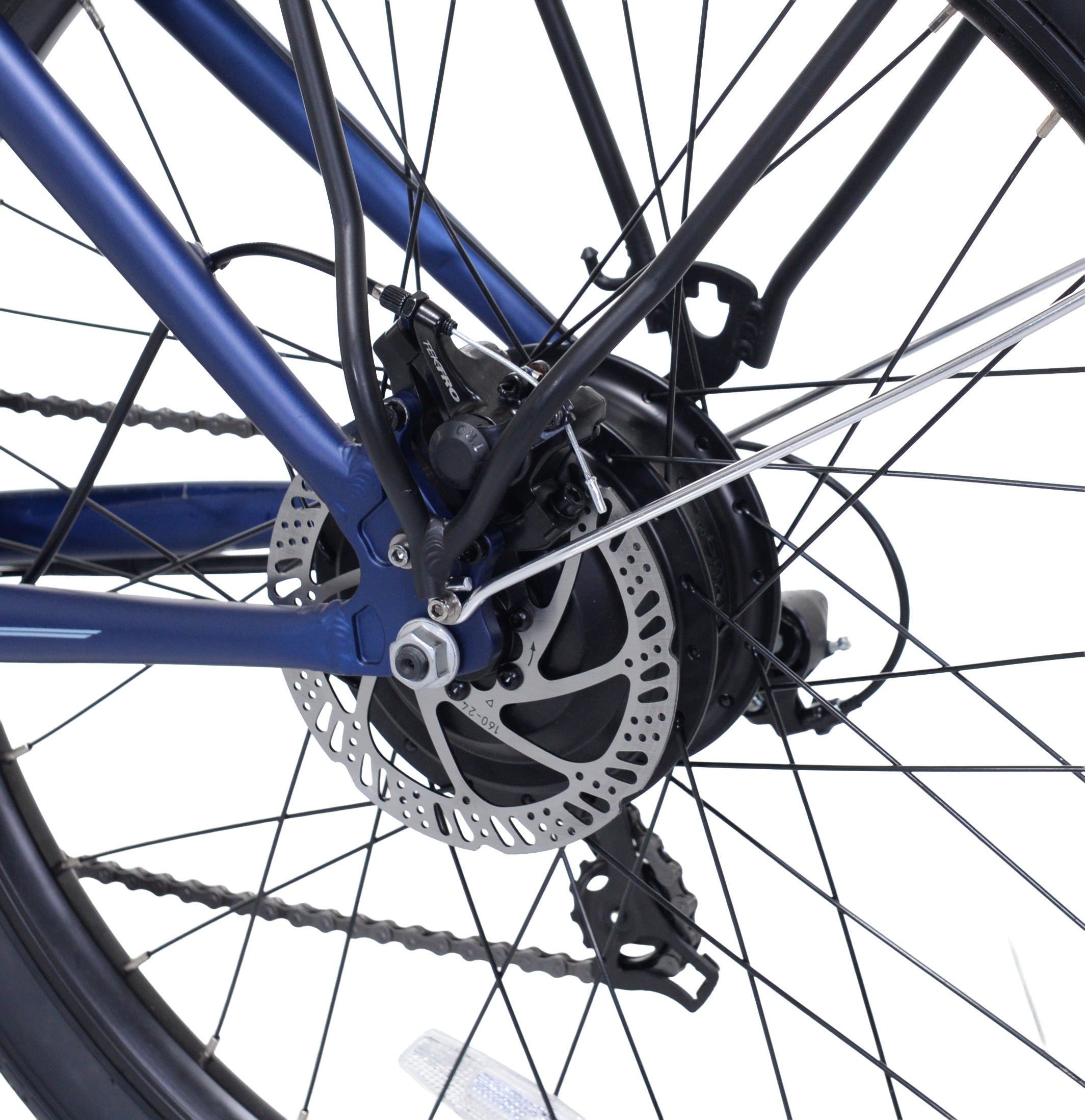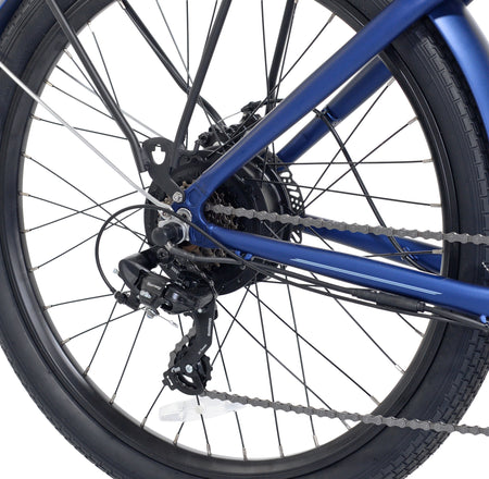 A sleek combination of style, comfort and power. A lightweight formed aluminum frame provides an effortless and enjoyable ride, and the 7 speed Shimano drivetrain with twist shifter gives you the freedom to tackle most terrains. Stay clean and dry with the front & rear fenders, and feel confident and in control with the front & rear disc brakes. The adjustable saddle, stem & handlebar allow you to find the perfect fit, and the smooth cruiser tires provide a comfortable ride on any surface. The lightweight double-wall alloy wheels are strong and rust resistant, and the front and rear fenders will keep your clothes clean and dry. The 36V 350 watt motor provides the power you need to tackle any challenge, and the handlebar mounted display controller offers 3 distinct power modes. The lithium ion 10.4Ah battery is removable and secured with a key, allowing you to charge while not installed on the bike. The 26" Shogun Rockport E-Cruiser bike is perfect for casual rides, commuting and more!